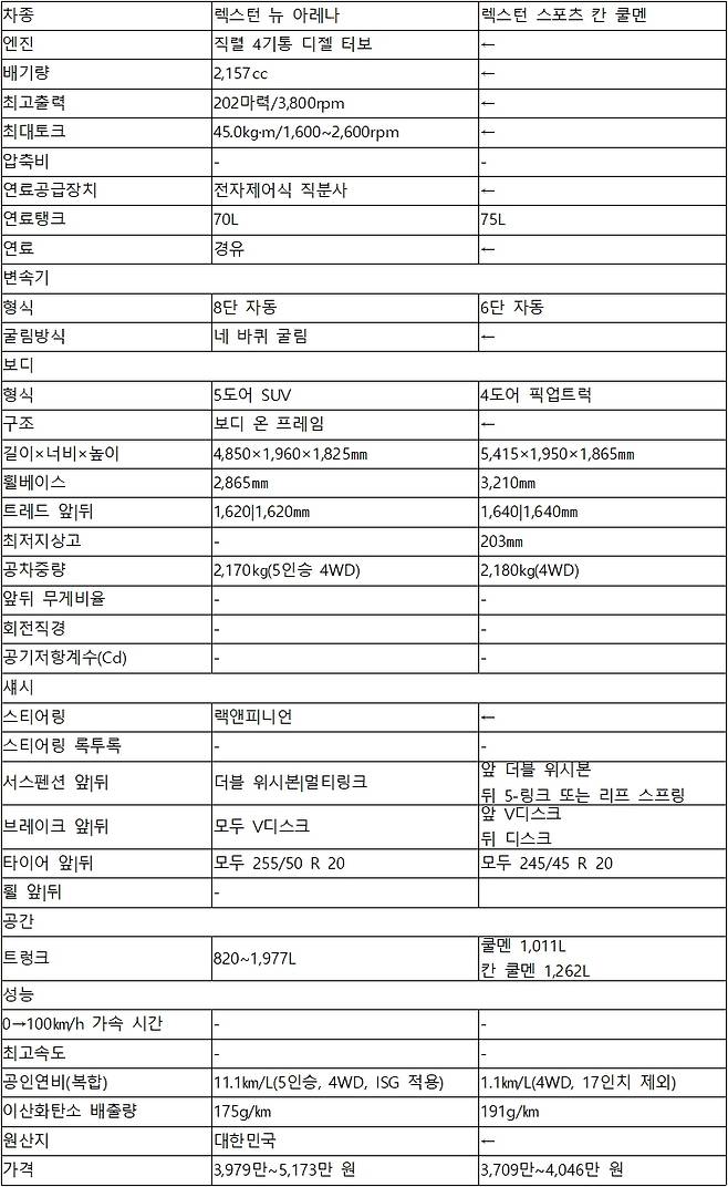 시승기에 앞서 새로운 이름의 뜻부터 설명하려고 한다. SUV 버전에는 ‘뉴 아레나’라는 부제를 달았다. 아레나(Arena)는 경기장 또는 무대란 뜻으로, 렉스턴의 넓은 실내를 표현하기 위해 붙인 이름이다. 2020년 선보인 올 뉴 렉스턴의 상품성을 올린 부분 변경 모델인 셈.