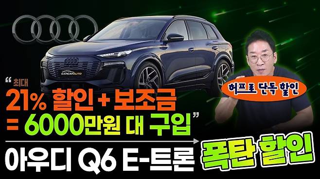 아우디 Q6 e-트론이 최대 2,387만 원 할인 프로모션을 적용하면서 실구매가 5,924만 원에 구매할 수 있게 되어 자동차 업계가 발칵 뒤집혔다. 독일 프리미엄 브랜드 전기 SUV가 국산 프리미엄 브랜드보다 저렴한 가격에 판매되는 전례 없는 상황이 연출되고 있다.