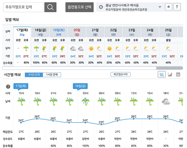 야외 스포츠인 만큼 날씨 확인도 중요합니다. 기상청 ‘날씨누리’에서 실시간 기상 상태를 확인하고 강수 확률, 기온, 바람 정보를 미리 점검하는 것이 필요합니다.