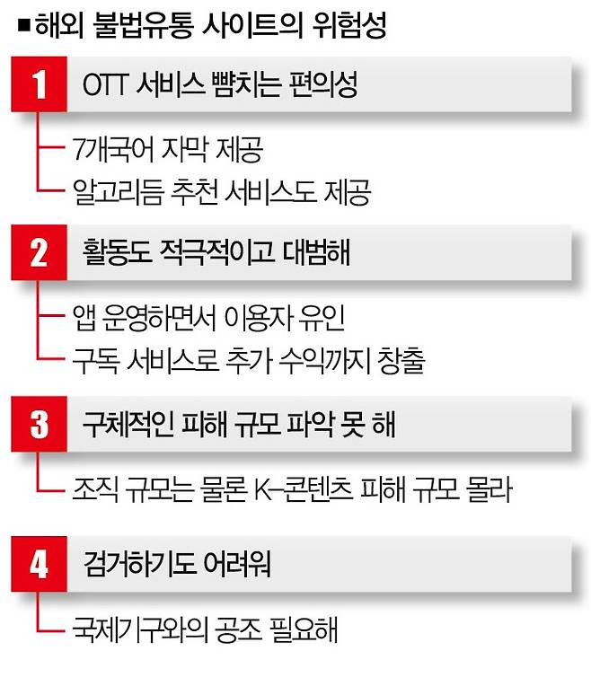 하지만 K-콘텐츠의 인기가 뜨거운 만큼 그림자도 짙어지고 있습니다. 불법으로 K-콘텐츠를 퍼다 나르는 '어둠의 루트'가 횡행하고 있어서입니다. 지난해 국내를 떠들썩하게 했던 불법유통 사이트 '누누TV'의 해외판 버전은 대표적 사례입니다.