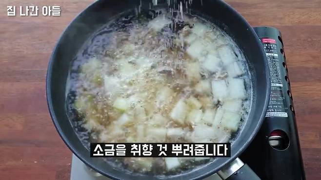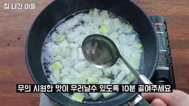 무의 시원한 맛을 우려내기 위해 10분 정도 끓이기가 중요해요.