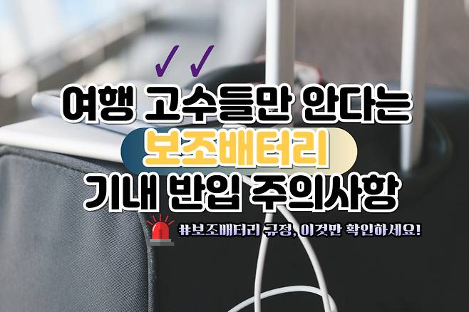 여행 중, 스마트폰, 태블릿, 카메라 등 다양한 전자기기들을 사용하다 보면 배터리가 금세 바닥을 보입니다. 이런 상황에서 보조배터리는 우리에게 꼭 필요한 아이템인데요. 하지만 기내 반입 시 규정을 제대로 지키지 않으면, 의도치 않게 큰 위험을 초래할 수 있습니다.