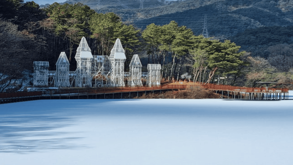 제천 비룡담 저수지는 겨울의 고요함 속에서도 특별한 분위기를 자아내는 곳인데요. 유럽풍 성과 같은 구조물이 숲속 저수지에 자리하고 있어, 마치 동화 속에 들어온 듯한 착각을 불러일으킵니다. 해 질 무렵 조명이 켜지는 순간부터 이곳은 사진 한 장으로는 담을 수 없는 몽환적인 분위기를 자랑합니다.