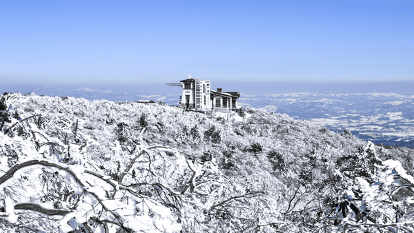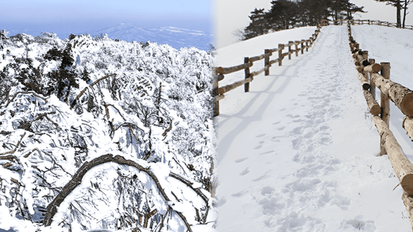 겨울에는 온 산이 하얗게 덮여 마치 구름 위를 걷는 듯한 착각을 불러일으키는데요. 케이블카를 타고 약 20분간 이동하는 동안에도 설경을 감상할 수 있어, 이동 자체가 여행의 한 부분이 됩니다. 스카이워크에 오르면 찬 바람과 눈꽃, 그리고 탁 트인 하늘이 어우러져 마치 자연의 에너지를 온몸으로 받는 듯한 느낌을 줍니다.