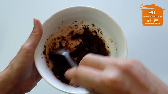 참기름 1큰술, 물 2큰술 넣고 잘 섞기