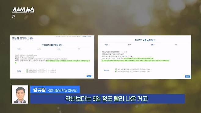 관측 시기 역시 9일가량 빨라졌다고 합니다