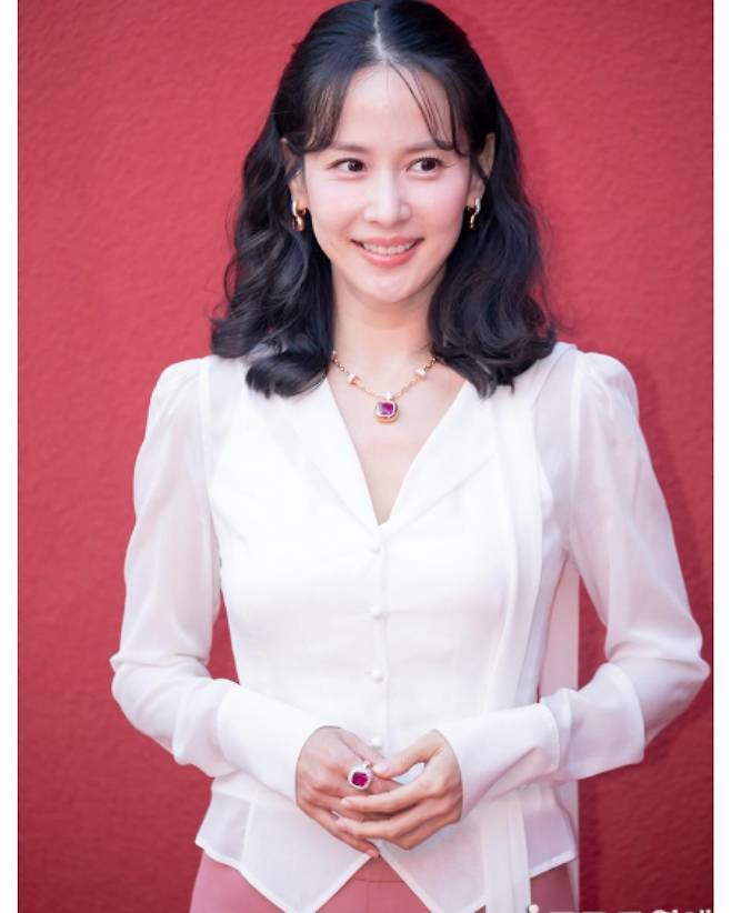 헤어는 자연스러운 웨이브에 반묶음 스타일로 깔끔하게 마무리되어, 조여정만의 청순하고도 고급스러운 무드를 완성해줬어요.