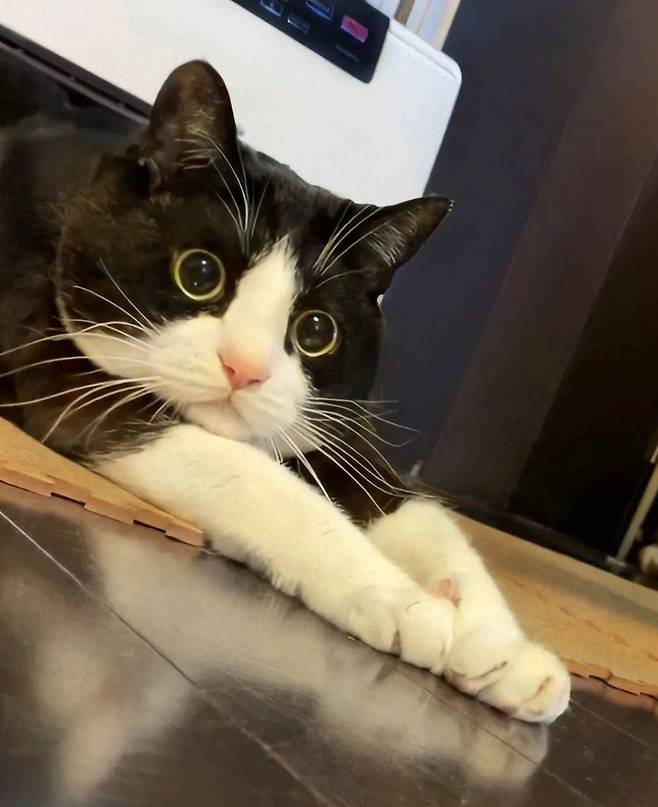 지루한 표정으로 누워있어도 똘똘한 고양이라는 걸 금방 알 수 있네요.