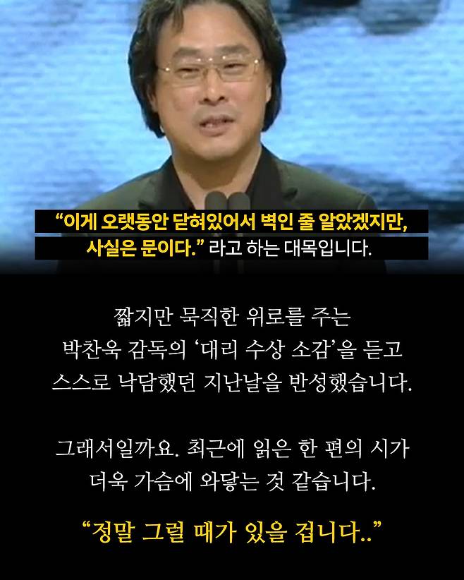 다시 봐도 너무 소름 돋는 박찬욱 감독의 품격있는 '대리 수상 소감'