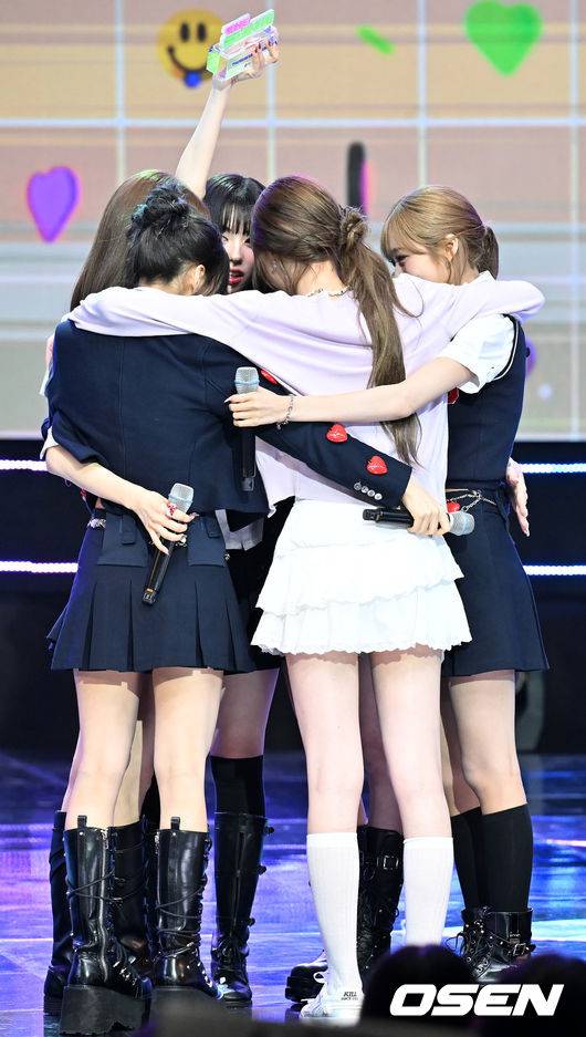이즈나가 더쇼초이스에 선정된 후 포옹을 하고 있다. 2025.06.17 /rumi@osen.co.kr