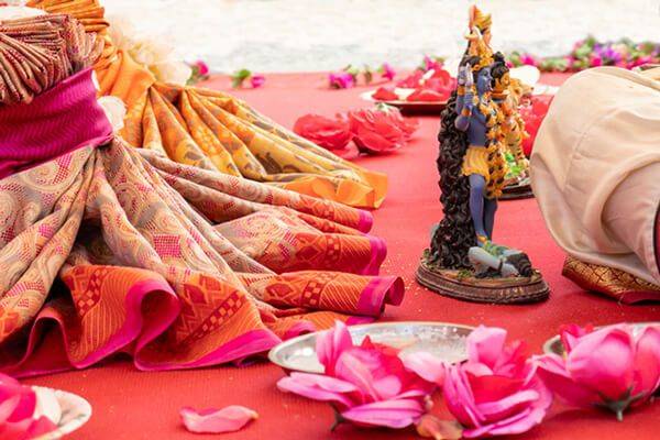 인도의 힌두식 전통 결혼식에는 특이한 풍습이 있다. 신랑과 신부가 함께 일곱 걸음을 걷는 의식이다. 이 의식은 힌두 결혼식에서 가장 중요한 의식으로 꼽힌다. 신랑과 신부는 쌀이나 강황 등으로 만들어 놓은 일곱 개의 무더기를 함께 지나가는데, 여기서 무더기의 의미는 부부가 함께 살면서 겪게 될 일들을 상징한다. 이 과정을 진행하는 동안 가족, 친지들이 축복을 하고, 승려가 부부를 위해 기도를 올리게 된다.