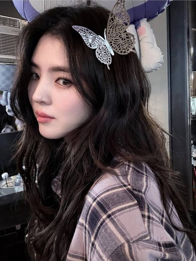 내추럴하게 풀어낸 웨이브 헤어에 포인트로 나비 장식을 더해 소녀 감성을 살렸고, 다양한 포즈로 인형 같은 미모를 자랑했습니다.