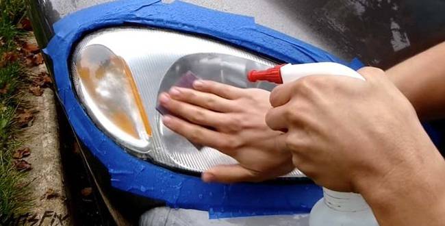헤드라이트 변색이 심한 경우, 사포로 표면을 일정하게 다듬고 복원제를 사용하는 것이 보다 효과적이다.