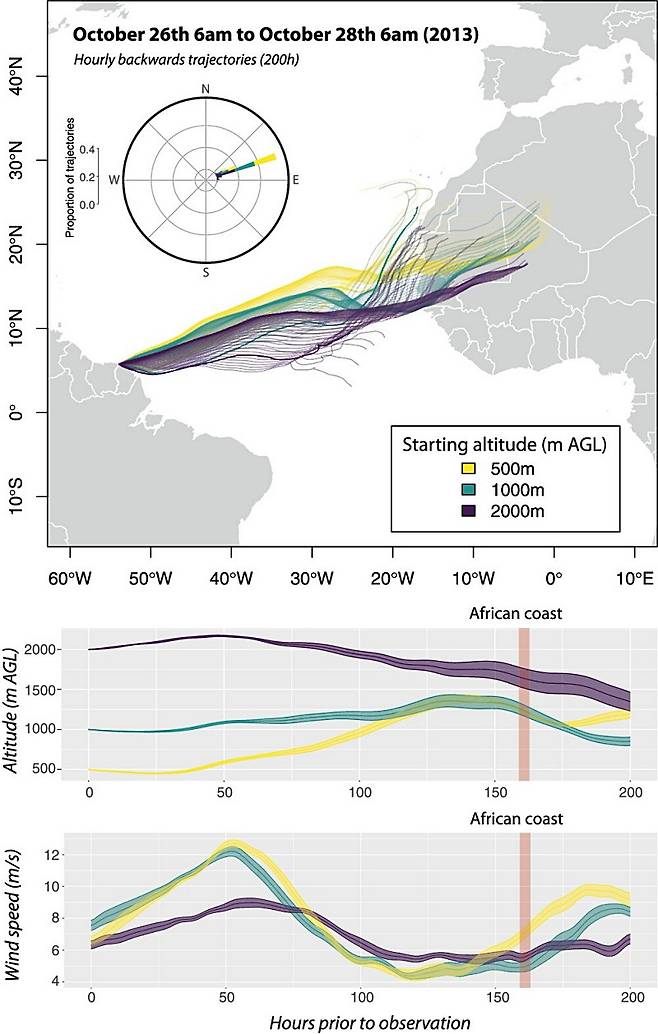 우선 연구팀은 이 나비가 도착하기 전 바람의 궤적을 시뮬레이션했다. 서아프리카에서 대서양을 횡단하기 딱 좋은 바람이 불 때 나비들이 건너왔을 가능성이 대두됐다. 기아나에 도착한 작은멋쟁이나비 일부의 게놈 배열을 분석, 전 세계의 다른 개체와 비교하면서 장거리 비행한 개체들이 아프리카나 유럽 개체들과 근연종인 사실이 밝혀졌다.