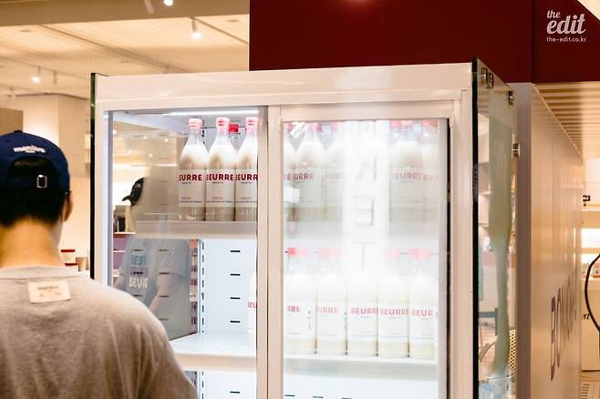 팝업스토어는 베이지와 버건디 두 가지 컬러로 차분하게 꾸며놓았고, 텍스트는 거의 알파벳만 사용했다. ‘BEURRE’라는 타이포그래피 덕분에 프랑스에서 온 브랜드처럼 보인다. BEURRE는 불어로 ‘버터’라는 뜻. 한 가지 흥미로운 점은 블랑제리뵈르의 대표가 어반자카파의 보컬 박용인이라는 것이다. 어반자카파의 노래 잘하는 그 분이 언제 사업을 시작하셨을까 싶었는데, 2016년부터 이자카야를 운영했고 2020년에는 마니에라는 패션 브랜드를 런칭했다. 마니에 역시 모태 프랑스 브랜드처럼 브랜딩을 한 터라 블랑제리뵈르와 결이 비슷하다.