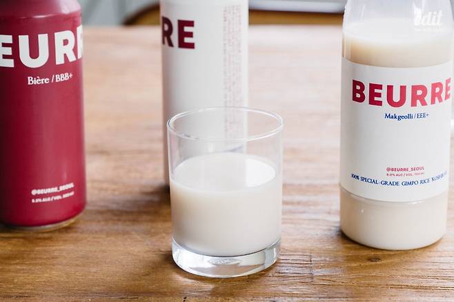 일단 8월 1일에 출시한 신상 막걸리부터 마셨다. 보통 힙하고 맛있는 막걸리를 말할 때 언급되는 술이 복순도가다. 친구가 “나 얼마 전에 맛있는 막걸리 마셔봤는데! 힙한 거!”라고 말할 때 “복순도가?”라고 되물으면 50퍼센트는 정답이다. 버터 막걸리는 그런 복순도가 못지않게 맛있는 술이다. 꿀떡꿀떡 넘어가고 목 넘김이 부드럽다. 복순도가와의 결정적인 차이라면 스파클링의 유무. 복순도가는 샴페인처럼 강한 스파클링이 있고, 버터 막걸리에는 탄산이 거의 없다고 봐도 된다. 산미도 거의 없다. 버터처럼 부드럽고 묵직함도 있다. 별도의 감미료를 넣지 않고 쌀만으로 단맛을 냈기 때문에 텁텁한 맛이 없다.