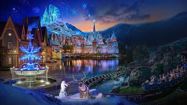 전 세계적으로 흥행한 프랜차이즈 애니메이션인 <겨울왕국>이 개봉한 지 10년 만에 홍콩 디즈니랜드 안에 구현된 '겨울왕국 세상'은 영화 속에 들어온 듯한 장엄한 피오르 산부터 북유럽의 감성을 고스란히 반영한 건축물, 순수 전기식으로 제작된 최신 오디오 애니매트로닉스 인형 등 관람객들에게 최고의 몰입감을 선사하기 위해 수많은 연구 끝에 완성된 테마파크죠.