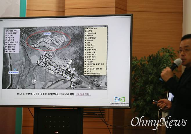 | ▲ 26일 부산시의회 브리핑룸에서 '부산 ‘영화숙·재생원 사건' 관련 진실화해를위한과거사정리위원회의 진실규명, 권고 발표 등 기자간담회가 열리고 있다. 과거 인권유린이 벌어졌던 장소를 설명하고 있는 진화위 조사관. |