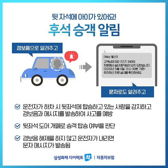 종종 뉴스를 통해 차에 홀로 남겨진 아이와 관련한 사고 소식이 들려오곤 합니다. 아이들의 경우 체구가 작아 타고 내리는 것을 자세히 관찰하지 않으면 놓치기 쉬운데요. 혹시 모를 사고를 방지하기 위해 후석 승객 알림이라는 서비스가 옵션으로 적용되는 추세라고 합니다. 후석 승객 알림이란 운전자 하차 시 아이의 자동차 탑승 여부를 감지하여 경보음과 메시지를 발송해 사고를 예방하는 기술입니다. 만일 운전자가 하차한 뒤 뒷좌석에서 움직임이 감지될 경우 외부 알림 및 개인 메시지로 알림이 전송이 된다고 하는데요. 아이가 있는 분들이라면 옵션 적용을 고려하시는 것도 좋을 것 같습니다.