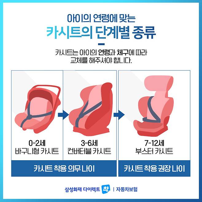 아이가 있는 부모님이라면 알고 계시듯, 6세 미만의 영유아는 카시트 착용이 의무인데요. 하지만 아이가6세가 넘었다고 해도 여전히 어른보다는 체형이 작아 안전벨트로 아이의 안전을 지키기는 어렵습니다. 아이의 연령과 체구에 맞지 않으면 안전장치가 오히려 위험할 수 있기 때문에 아이 연령에 맞춘 안전장치 설치는 필수입니다.