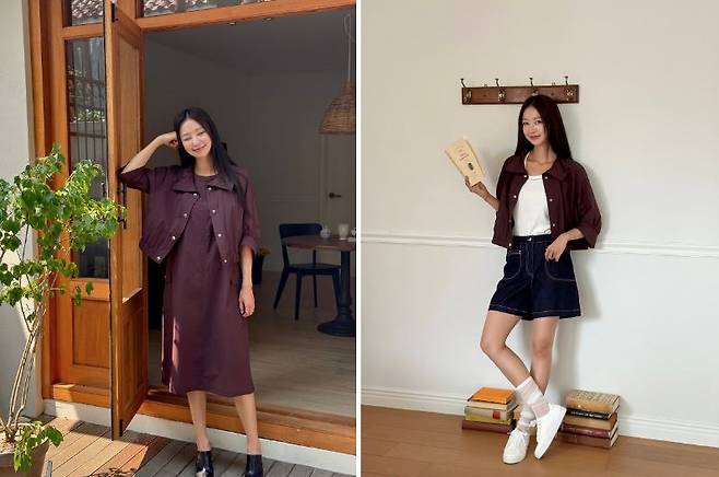 점퍼를 따로 코디하면 간절기 아우터로 유용하고 한여름은 원피스만 착용해서 시원하게,