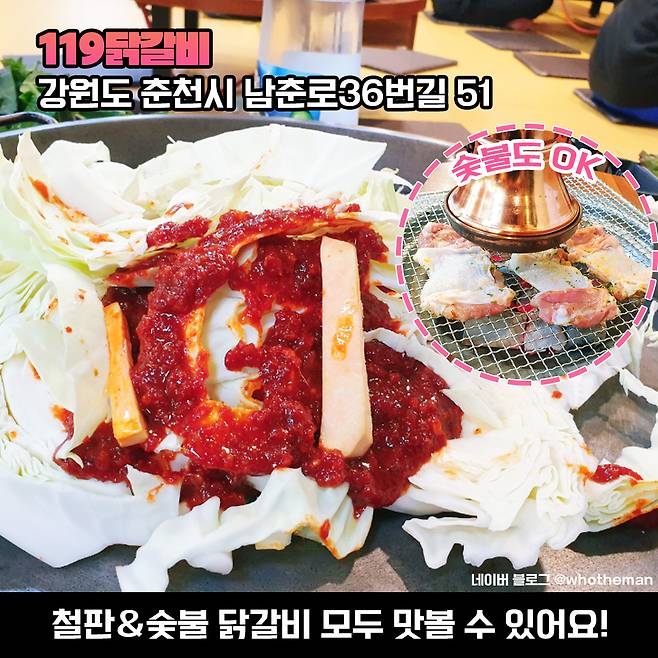 가격: 숯불닭갈비 14,000원/철판닭갈비 13,000원