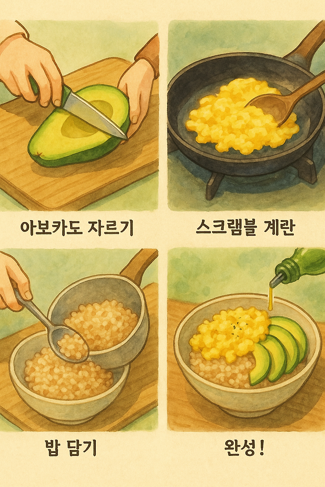 3. ‘아보카도 스크램블 덮밥’ – 탄단지 균형 한 그릇