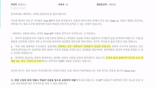 '과제에 챗GPT 의무 사용'이라는