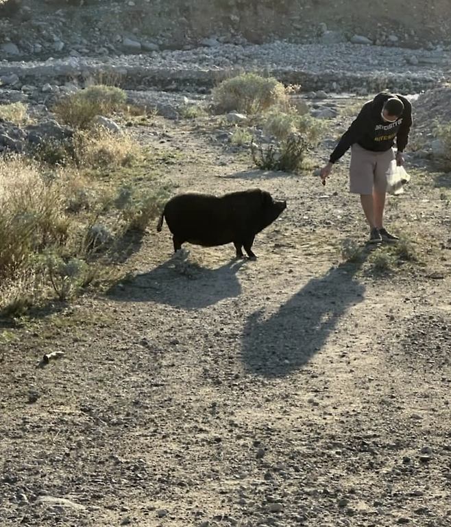 어느 날 한 남자가 산책을 나갔을 때 바쁜 도로 근처에서 뭔가 움직이는 것을 발견했습니다. 그는 더 자세히 살펴보러 가자 — 그리고 홀로 있는 돼지를 발견했습니다. 그 돼지는 누군가 그를 발견하기를 기다리고 있었습니다.