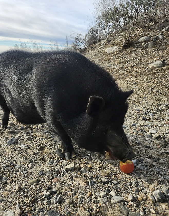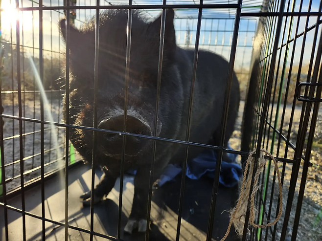 어느 날 한 남자가 산책을 나갔을 때 바쁜 도로 근처에서 뭔가 움직이는 것을 발견했습니다. 그는 더 자세히 살펴보러 가자 — 그리고 홀로 있는 돼지를 발견했습니다. 그 돼지는 누군가 그를 발견하기를 기다리고 있었습니다.