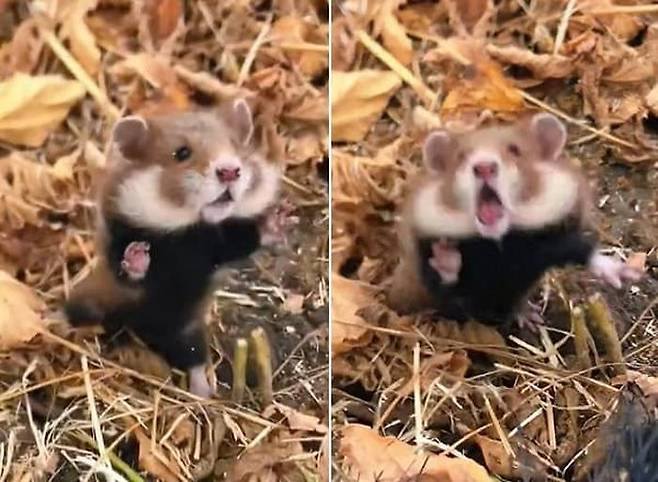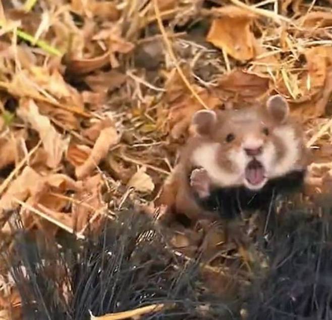 사연은 이렇습니다. SNS상에는 낙엽더미 위에서 야생 햄스터가 자기보다 몇 배나 훨씬 큰 사람을 향해 다짜고짜 항의하고 따지는 모습이 담긴 영상이 올라왔죠.