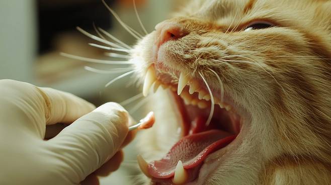 구강 내 염증이 생기면 고양이는 불편함을 해소하려고 머리를 흔들거나 침을 많이 흘릴 수 있습니다. 이럴 경우 치과 검진을 받아보는 것이 중요합니다.