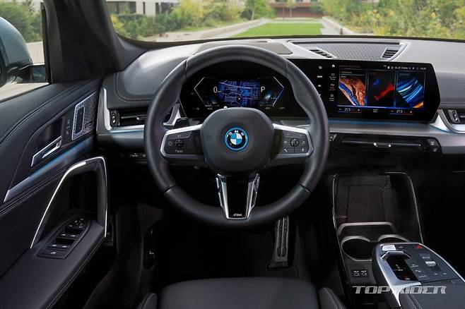 최고속도는 180km/h다. 최대 40마력 부스트 모드가 제공된다. iX1에는 10.25인치 디지털 계기판과 10.7인치 디스플레이로 구성된 커브드 디스플레이, 토글형 기어 레버, 가상 사운드, 최신 ADAS 등이 탑재됐다. 트렁크 용량은 내연기관보다 소폭 줄어든 490~1500ℓ다.