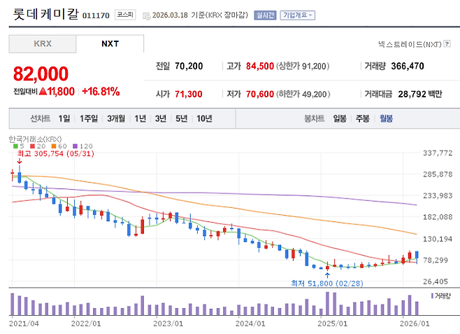 롯데케미칼 주가 / 사진 = 네이버 증권