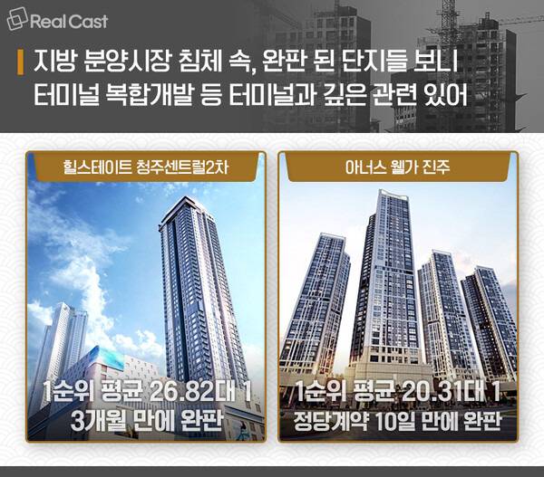 두 아파트 모두 지방 분양시장의 침체 속에서 성공적으로 분양을 마쳤는데 ‘터미널’과 관련돼 있다는 사실이 눈길을 끌고 있습니다.