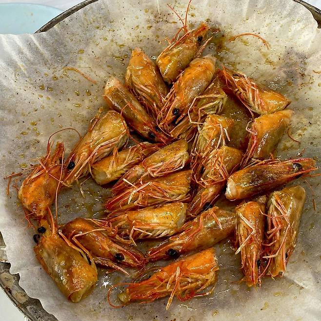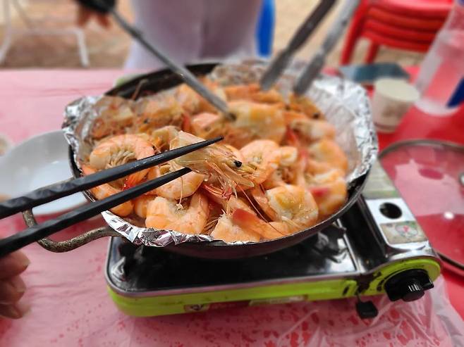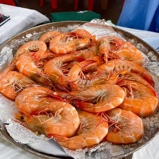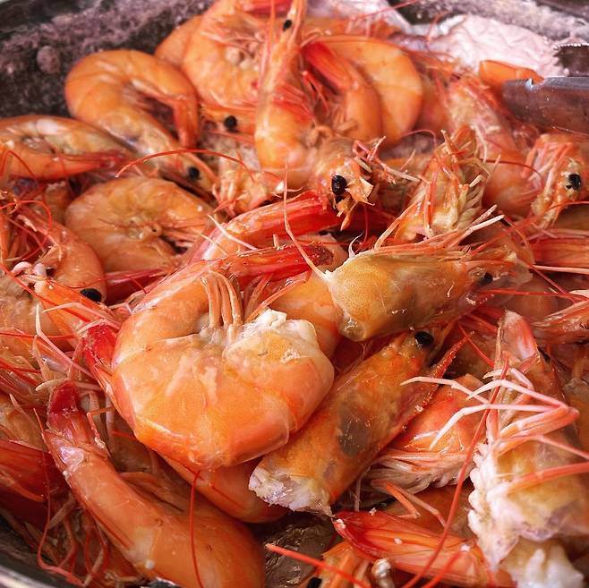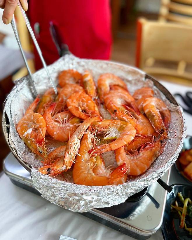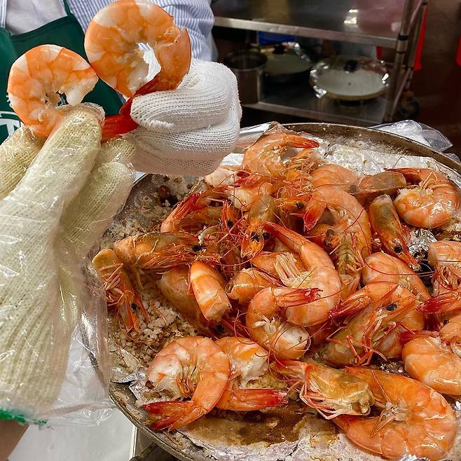 ✔메뉴: 왕새우 소금구이 (1kg) 48,000원, 새우라면 5,000원