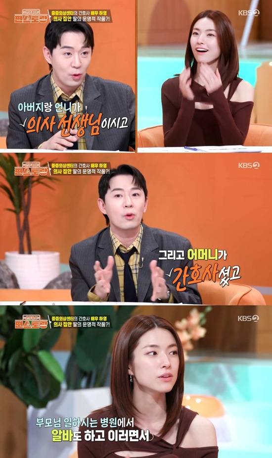 하영은 부모님이 일하던 병원에서 아르바이트하며 의료 현장을 익숙하게 경험했고, 이런 경험이 작품 속 간호사 연기에 큰 도움이 됐다고 고백했다.