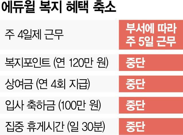 상여금·휴게시간 등 복지 축소에