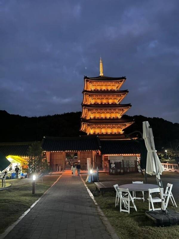 사명대사공원의 가장 큰 볼거리는 단연 '평화의 탑'입니다. 높이 41.5m로 국내에서 가장 높은 목탑으로, 황룡사 9층탑을 연상케 하는 웅장한 모습을 자랑합니다. 특히 화려한 단청 대신 천연 옻칠로 마감해 고풍스러운 멋을 더했어요.