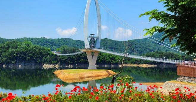 붕어섬은 420m 길이의 출렁다리로 연결되어 있는데, 다리 위에서 바라보는 호수와 산, 그리고 아침이면 피어오르는 물안개는 전국 사진가들의 마음을 사로잡고 있죠. 출렁다리를 건너면 만나는 붕어섬 생태공원은 자연 그대로의 매력을 간직하고 있어, 산책을 하며 호수와 꽃, 그리고 숲의 조화를 한눈에 감상할 수 있습니다.