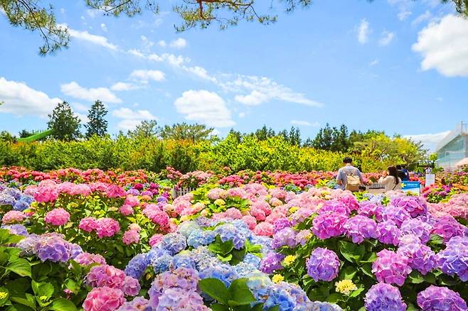 특히 수국꽃을 배경으로 한 포토존이 다양하게 마련되어 있어, 방문객들의 SNS를 수놓을 인생샷을 남기기에 제격입니다.