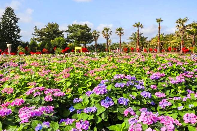 휴애리는 매년 다양한 꽃 축제를 통해 계절마다 색다른 감동을 선사하는 제주 대표 정원으로, 지금은 봄 수국 축제가 한창입니다.