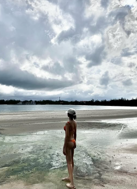 이주연 님의 또 다른 비치룩도 인상적이었는데요. 이번에는 강렬한 레드 컬러의 비키니를 선택해 존재감이 확실하면서도 한층 더 과감한 느낌을 줬답니다.