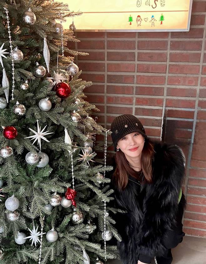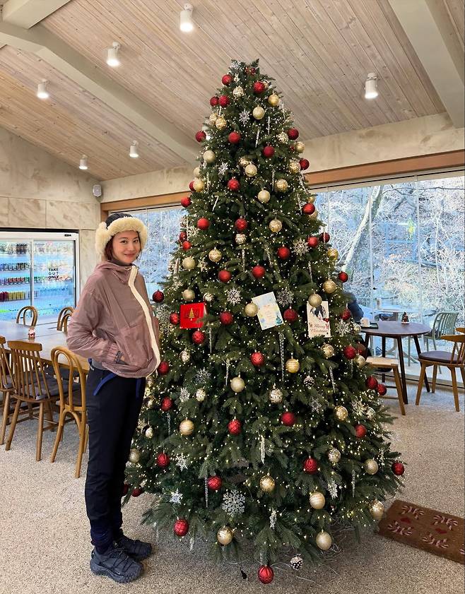 배우 유인영 씨가 개인 SNS를 통해 반짝이는 크리스마스트리 앞에서 환한 미소를 짓고 있는 사진을 공개하며 팬들에게 따뜻한 연말 인사를 전했어요.