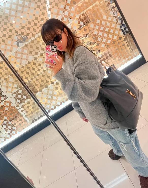 브랜드 입생로랑의 가방을 착용. 편안한 매력의 토트백이 룩을 완성시켜요.