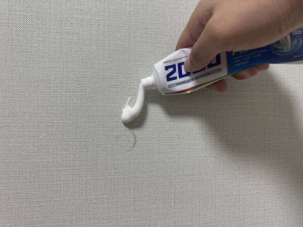 칫솔에 치약을 소량 짜서 얼룩 위를 부드럽게 문질러주세요.