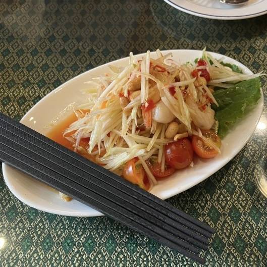 “…혹시 셰프님 태국 분이세요?” 이태원 골목 사이 유독 눈에 띄는 민트색 건물. (여자)아이들 민니의 진심 어린 질문을 받은 쏭타이다. 이곳은 동물, 지구, 환경을 생각해 태국 음식에 비건 옵션을 추가 했다. 메뉴 중 코코넛 밀크가 듬뿍 들어간 그린 커리는 없던 고향도 떠오르게 한다고. 게다가 ‘안 맵게, 덜 맵게, 기본, 더 맵게’로 맵기 단계를 세심하게 나눠 감동을 더했다. 매콤한 그린 파파야 샐러드 ‘쏨땀타이’를 순한 맛으로 먹어보고 싶다면 쏭타이를 추천한다.
