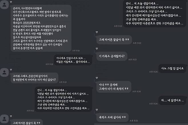 그러자 해당 연예인은 태도를 돌변하더니 "이 카톡도 공개할 거니? 공개해. 그래야 네가 더 욕먹지. 욕먹고 오래 살아라"라며 또 악담을 퍼부었습니다.