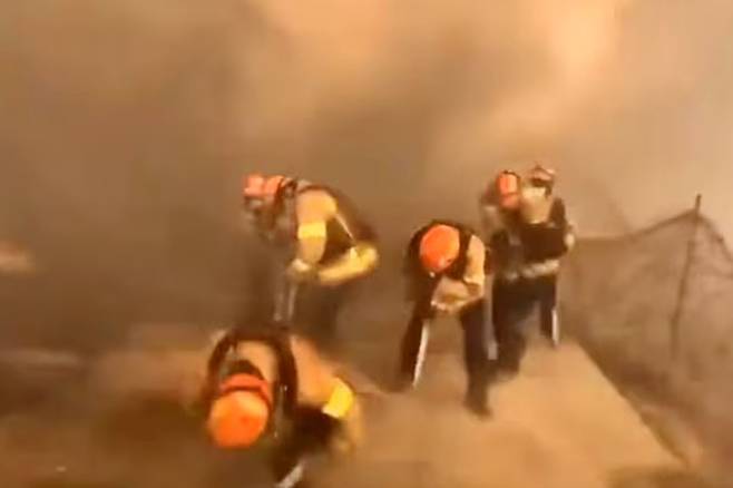 현장에 출동한 소방관들의 긴박한 모습이 10초 내외의 짧은 영상으로 공개되기도 했다. 실제 현재 소방관들은 실시간으로 확대되는 화재 현장을 막기 위해 투입되면서 장기화하는 산불로 인해 밤낮없이 살인적인 근무를 이어가며 높은 피로도를 호소하고 있다. 소방관은 실제 위험한 임무와 격무에 시달리면서 순직하거나 다치는 경우가 많다. 2023년에만 1,336명의 소방공무원이 순직하거나 다쳤다.