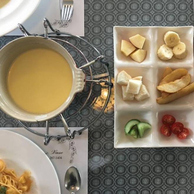 용인민속촌 맛집 하면 빠지지 않는 양식 레스토랑 바소를 소개한다. 스위스 치즈 퐁듀를 필두로 토마토 치즈 퐁듀, 칠리 페퍼 퐁듀, 트러플 풍기 퐁듀까지, 퐁듀에 진심인 곳이다. 1인분도 주문 가능한데, 시그니처 메뉴인 스위스 치즈 퐁듀를 애피타이저로 조금씩 맛볼 수 있도록 하기 위함이라고. 여기에 빵, 감자튀김을 비롯해 바나나, 복숭아, 오이 등 다소 생소한 재료가 나오는데, 상큼한 채소와 과일이 진득하고 고소한 치즈와 은근히 잘 어우러진다. 무엇보다 스위스에서 직접 공수한 치즈만을 사용하기 때문에 현지 그대로의 맛을 느끼고 싶다면 바소로 가보자.